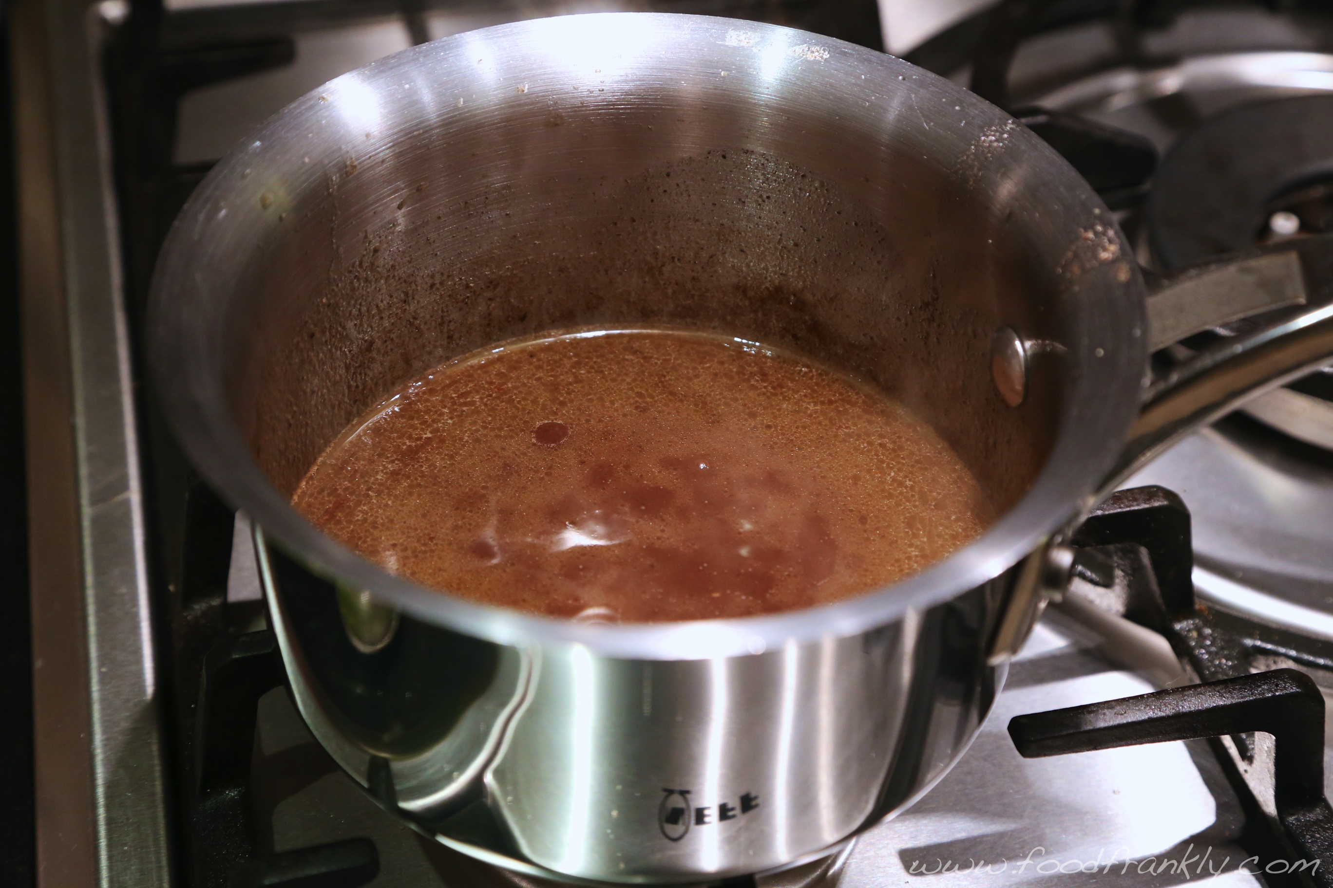 Strain the cooking liquor into a saucepan and gently reduce until thick and viscous (coating the back of a spoon). Taste and season if necessary, but it probably won’t be.